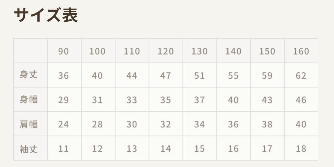 ※キッズサイズは画像参照